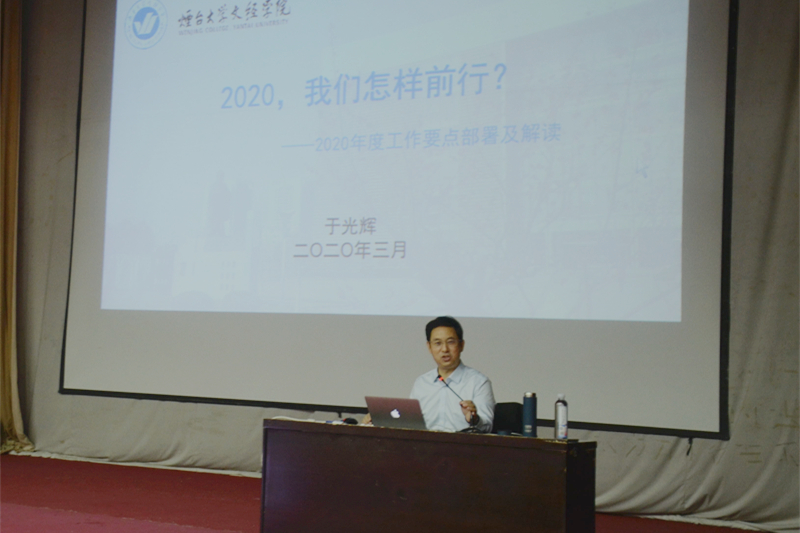 院长于光辉作题为《2020,我们怎样前行?——2020年度工作要点部署及解读》的重要报告,对2020年学院工作进行动员部署。报告围绕学院发展面临的基本形势和任务、学院本年度确定的七方面工作解读和做好今年工作需要加强的几个问题三个方面展开。