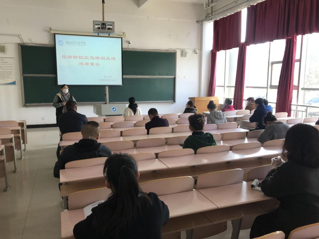 为进一步做好开学前后疫情防控准备工作,压紧压实工作责任,提高应急处理能力,全力做好疫情防控和开学准备工作,2020年4月10日上午,学工部在二教109教室召开了疫情防控应急培训及演练布置会。学工部部长杜娟、教务部副部长杨军及学工部全体成员参加了会议。会议由学工部副部长王明印主持。