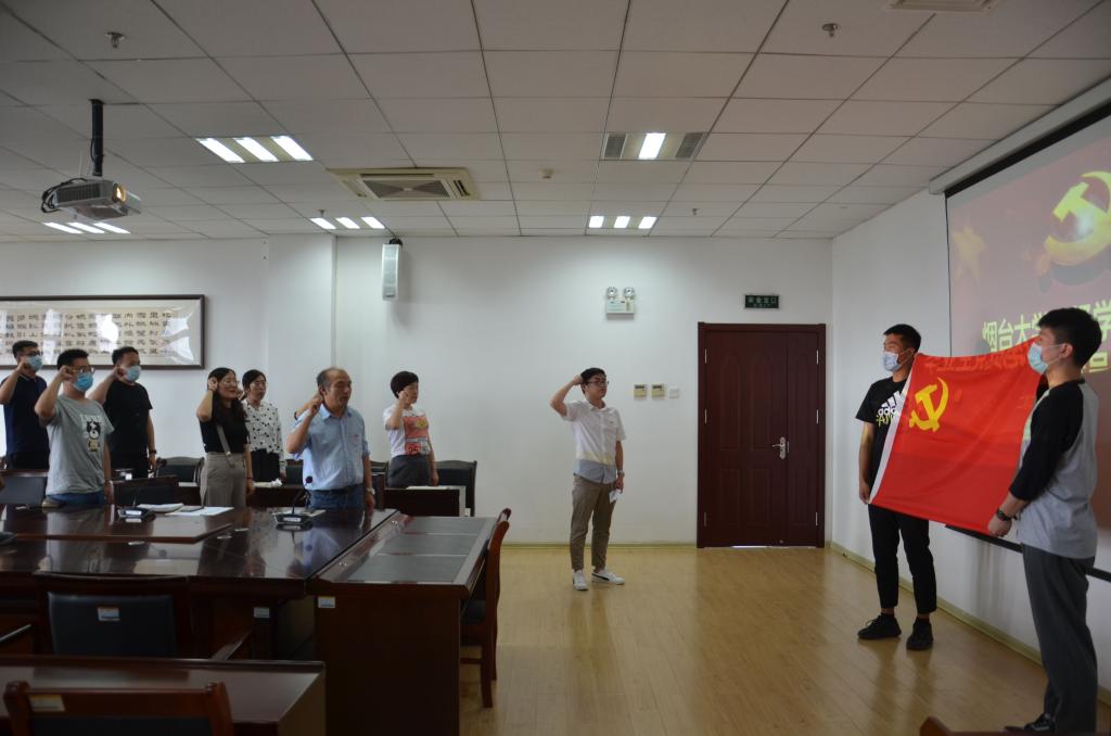 会上,全体党员面向党旗,重温入党誓词。