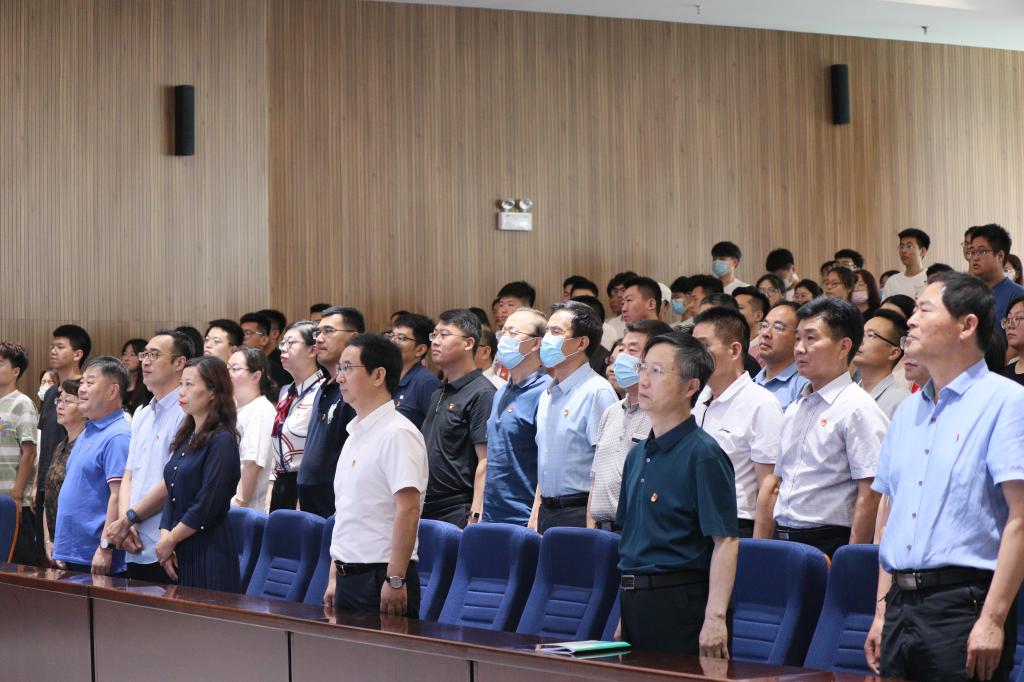 大会伊始,全场起立奏唱国歌。烟台理工学院全体师生党员满怀对中国共产党的深情敬意和无比激动的心情在实验大楼六楼报告厅观看了大会直播,与全国人民共同见证这一重要历史时刻。