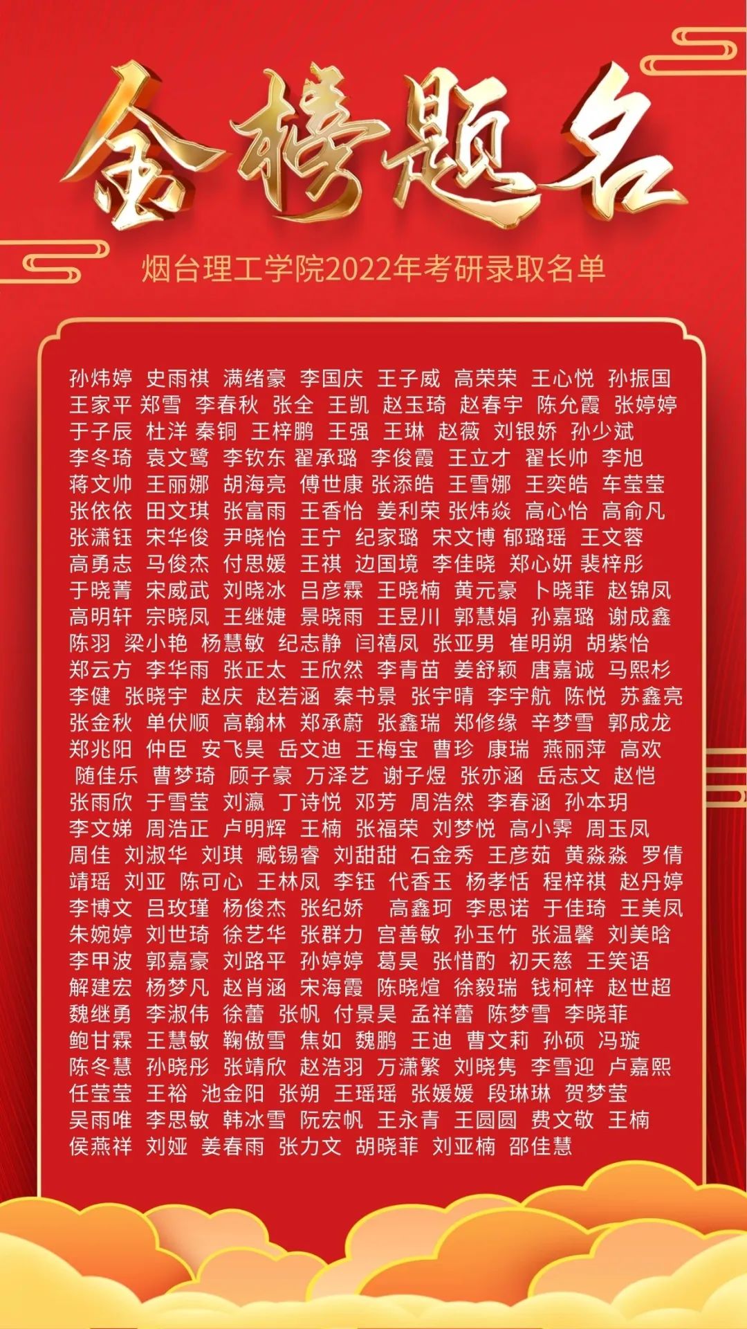 千芳竞妍,万物勃发。在这姹紫嫣红的时节,烟台理工学院2022届毕业生考研成绩传来佳讯。据统计,今年我校共有1312名同学报考研究生,其中246名同学被高校录取,其中20名同学被中央民族大学、中国人民大学、南开大学、中国海洋大学、中国石油大学等985和211高校录取。