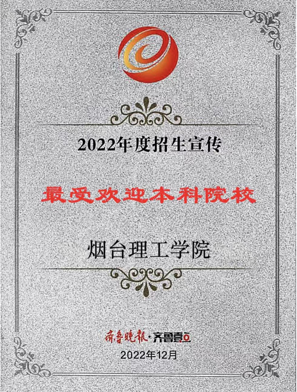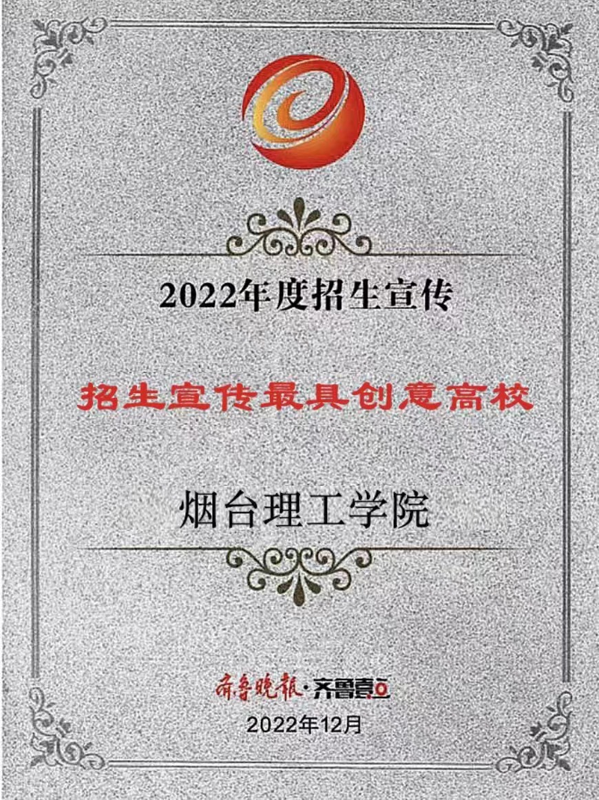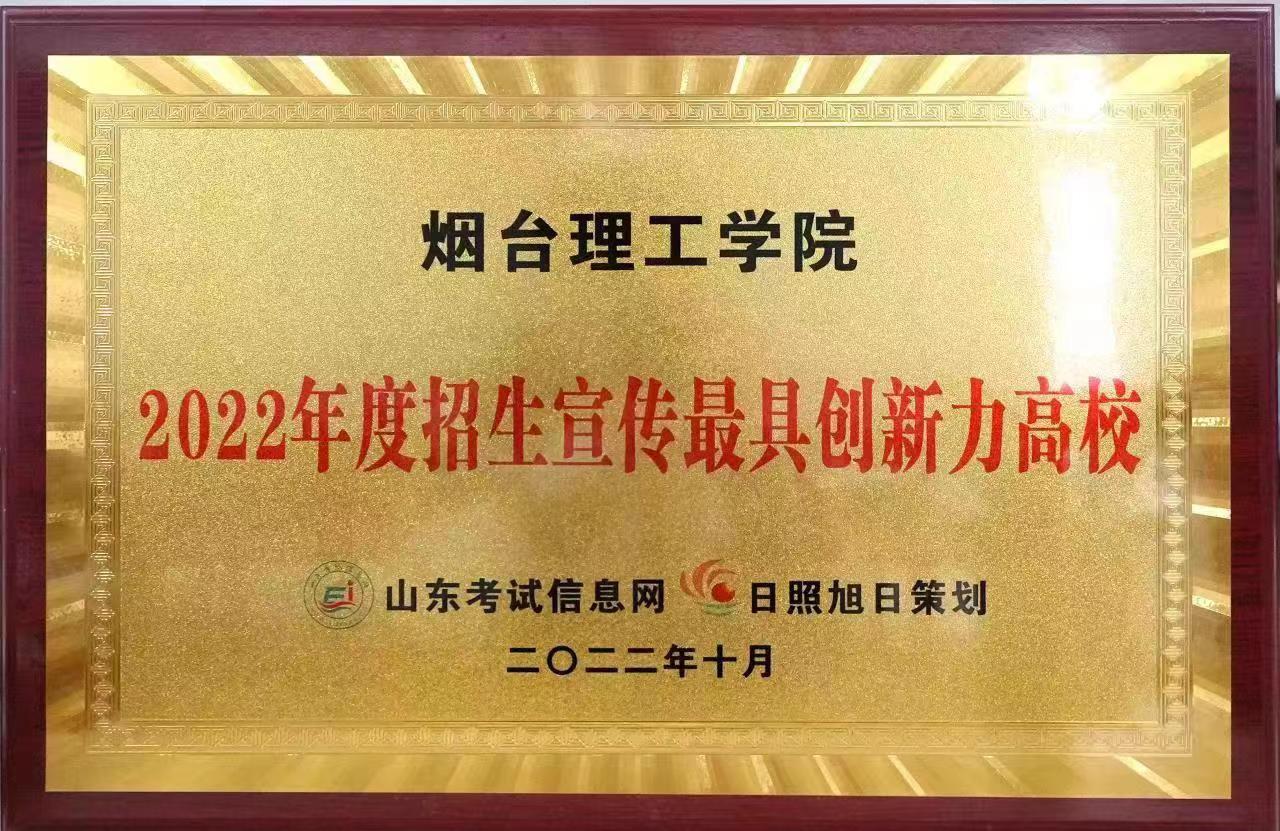 此前,我校凭借2022年招生宣传工作的突出成绩,已接连获得多家社会主流媒体授予的多项荣誉。分别是中国教育在线“榜样力量·2022年度教育盛典”颁发的“山东省最受中学信赖本科高校”奖,阳光教育在线评选的“2022年度最受考生欢迎本科高校”奖,山东考试信息网评出的“2022年度招生宣传最具创新力高校”,以及校π2022年高校数字招生领域“最佳创新领先奖”。