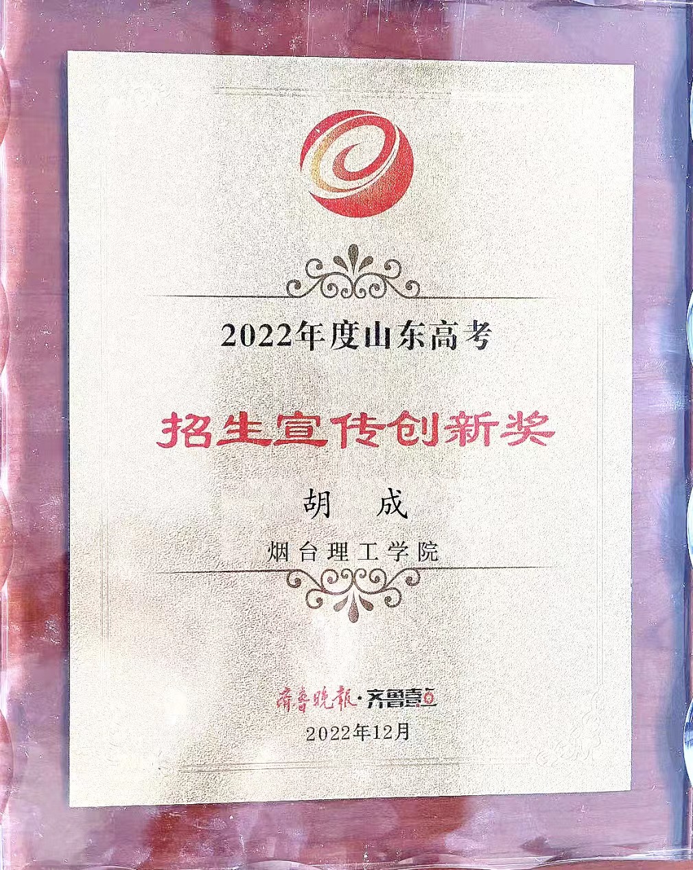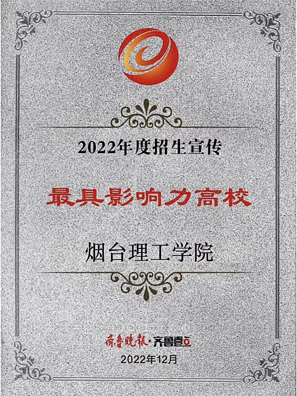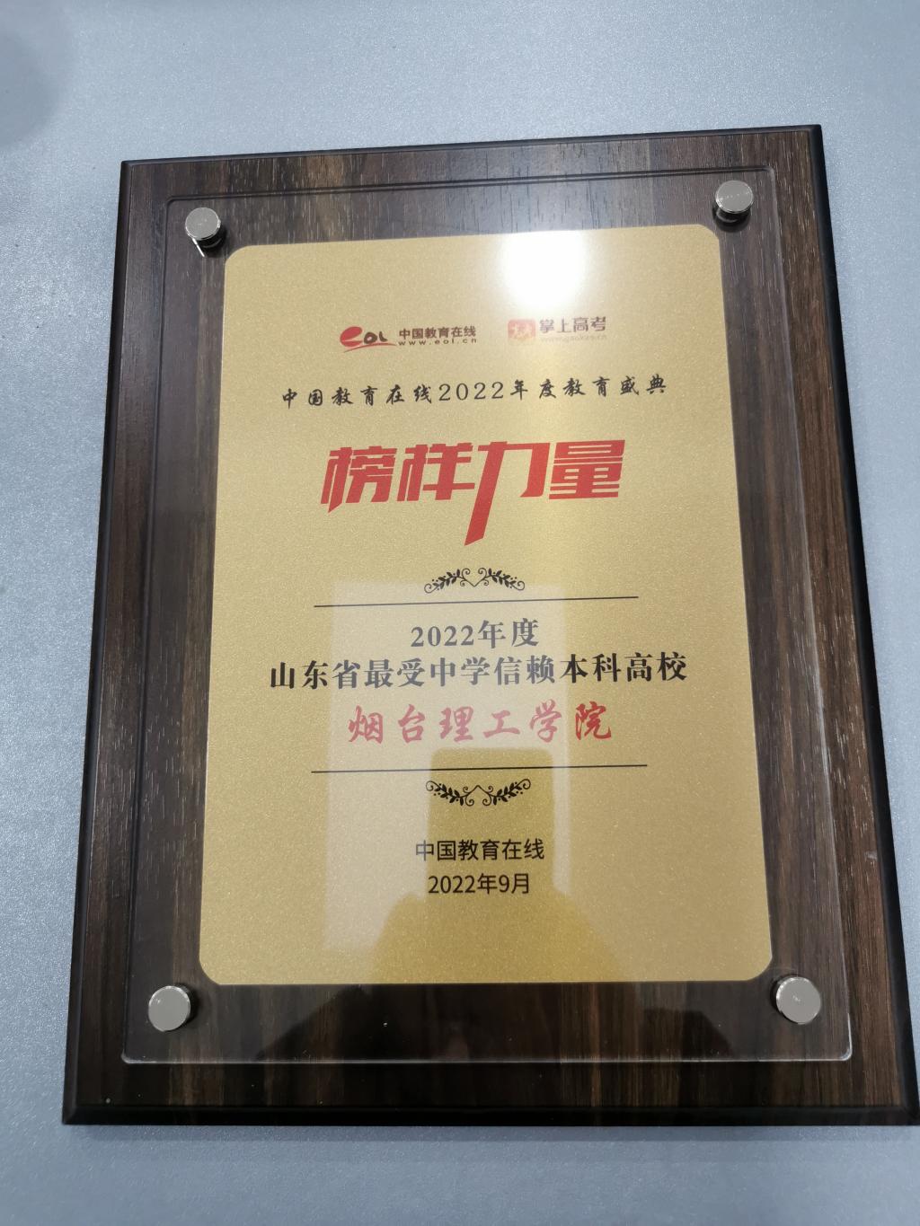 此前,我校凭借2022年招生宣传工作的突出成绩,已接连获得多家社会主流媒体授予的多项荣誉。分别是中国教育在线“榜样力量·2022年度教育盛典”颁发的“山东省最受中学信赖本科高校”奖,阳光教育在线评选的“2022年度最受考生欢迎本科高校”奖,山东考试信息网评出的“2022年度招生宣传最具创新力高校”,以及校π2022年高校数字招生领域“最佳创新领先奖”。