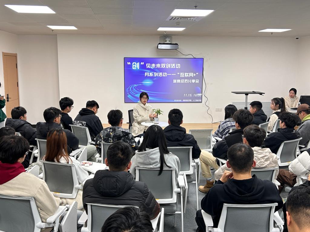 为培养学生的创新思维和拼搏精神,积极为学生参与学科竞赛提供有利条件,11月15日下午,由招生就业处(创新创业学院)主办,人工智能学院承办的“创”见未来双创活动月第三场活动—“互联网+”大学生创新创业大赛参赛经历分享会于综合楼负一层大学生就业创业试验园举办,我校第九届“互联网+”大学生创新创业大赛获奖项目代表、各二级学院学生骨干参加了分享会。