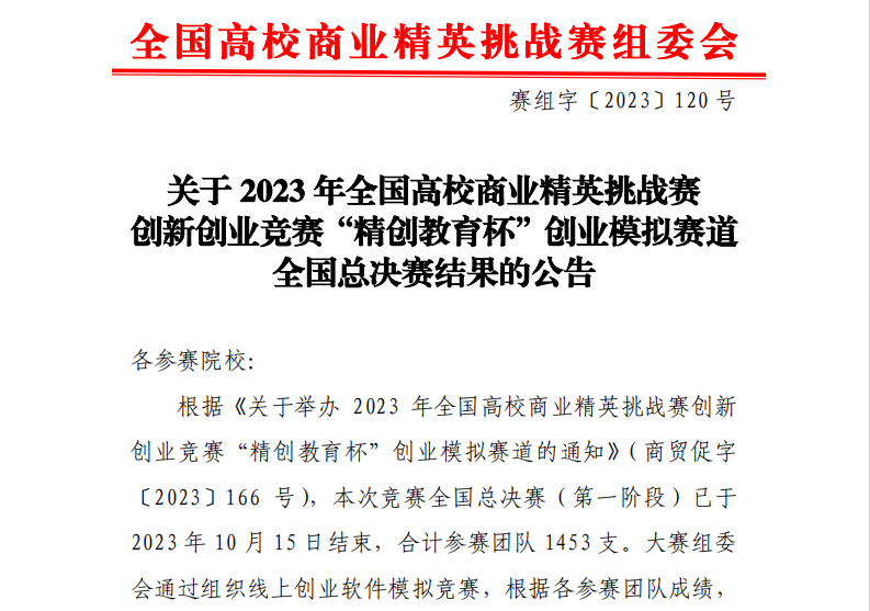 喜报!我校学子荣获7项2023年全国高校商业精英挑战赛创新创业竞赛“精创教育杯”创业模拟赛道国赛二等奖