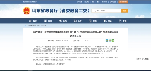 山东省“高校优秀辅导员”评选是由中共山东省委教育工委主办,经学校推荐、材料审核、专家评审等环节评选产生,旨在充分发挥榜样示范作用,进一步引领广大高校辅导员坚持用习近平新时代中国特色社会主义思想铸魂育人,潜心育人、扎实工作、开拓创新,为培养德智体美劳全面发展的社会主义建设者和接班人贡献力量,共评选“山东高校辅导员年度人物”11名,山东高校优秀辅导员93名。