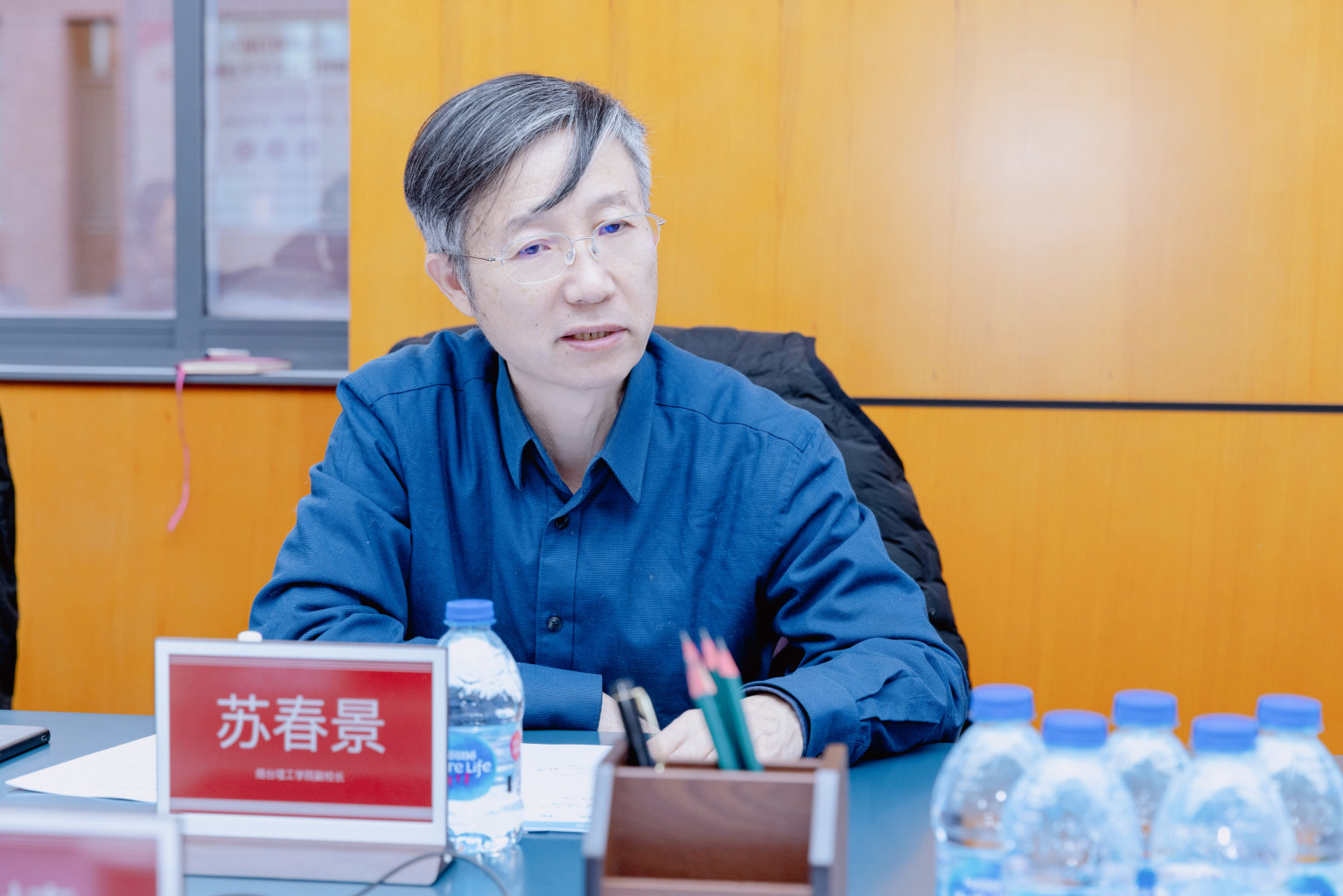 副校长苏春景介绍了我校的办学宗旨和人才培养定位,重点介绍了学校在打造应用型科研、搭建政产学研平台、深入推进校企协同育人等方面所作出的探索与成果。此外,副校长苏春景着重提及了学校与外研社在“口语与沟通”、“中华优秀传统文化”等通识教育与科研等方面的合作情况。苏校长表示,烟台理工学院希望能基于与外研社现有的良好合作基础,在学科发展、教学成果、学术科研等方面进一步深化合作,实现互利共赢。