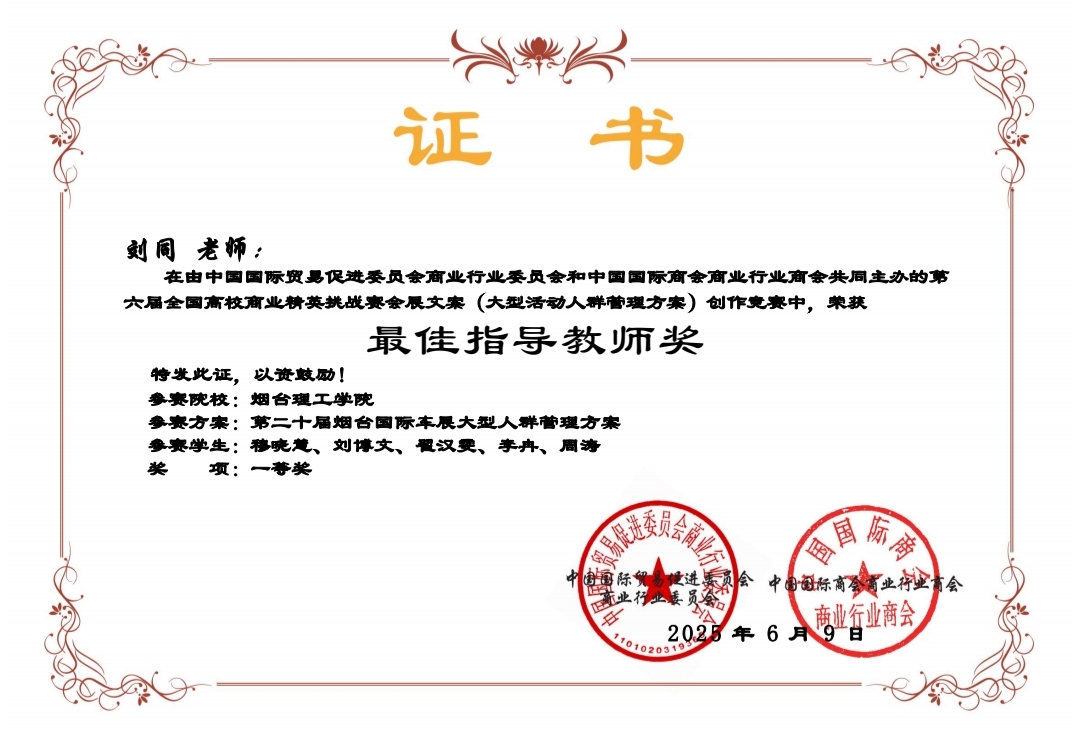 近日,第六届全国高校商业精英挑战赛会展文案(大型活动人群管理方案)创作竞赛全国总决赛圆满落幕。根据中国国际贸易促进委员会商业行业委员会与中国国际商会商业行业商会发布的《关于举办第六届全国高校商业精英挑战赛会展文案(大型活动人群管理方案)创作竞赛的函》(商贸促字〔2025〕66号),本届赛事吸引了来自全国26个省、自治区、直辖市的186所高校、398支队伍参赛。经过省赛选拔、组委会初评、专家复评及终审环节,最终共有133所高校、262支队伍、1800余名师生入围全国总决赛。