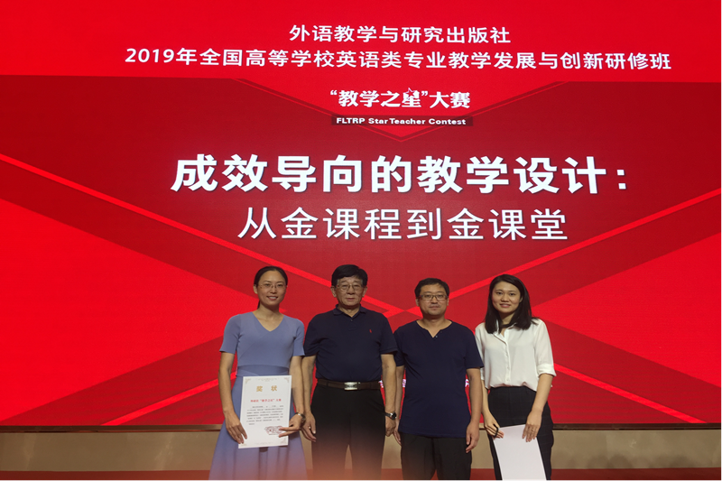 外研社“教学之星”大赛是由教育部高等学校大学外语教学指导委员会、教育部高等学校英语专业教学指导分委员会、外语教学与研究出版社、北京外研在线数字科技有限公司共同主办的面向全国高等学校外语教师的大型赛事。本届外研社“教学之星”大赛赛题定为“成效导向的教学设计:从金课程到金课堂”。全国共有大学英语近300个教师团队、英语类专业组近200个教师团队参赛。英语类专业全国半决赛共产生特等奖3项、一等奖9项、二等奖21项,经过激烈的比拼和切磋,我院教学团队荣获一等奖。