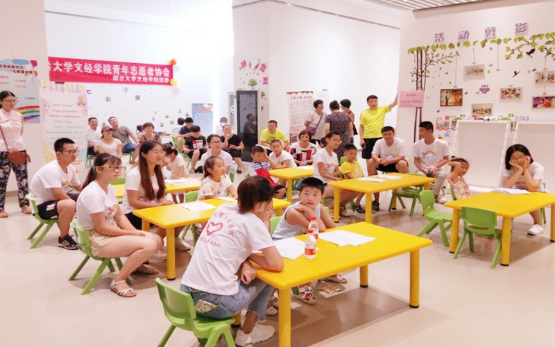 7月23日上午,烟台大学文经学院 “一米阳光”志愿服务队在烟台市莱山区图书馆主办的第三期“七彩夏令营”活动圆满结束,15名农民工子女及其家长参加了此次闭幕式。
