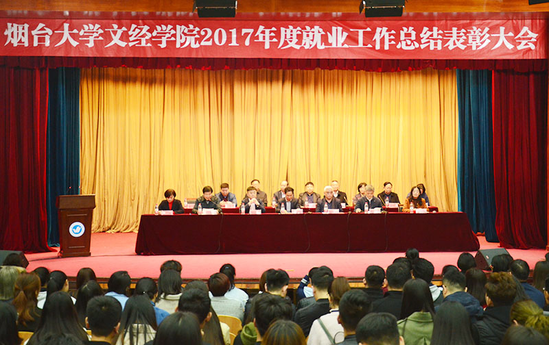 3月29日下午,烟台大学文经学院2017年度就业工作总结表彰大会于一教多功能厅举行,总结2017年度毕业生就业工作,表彰先进集体与个人,为2018年度就业工作进一步打好基础。院长于光辉,副院长王来武、辛连军,院长助理杜希成、史毅出席会议,就业创业部部长李洁、学工部部长张琼玉,各系党政负责人、全体辅导员、班主任以及学生代表参加会议。会议由院长助理杜希成主持。