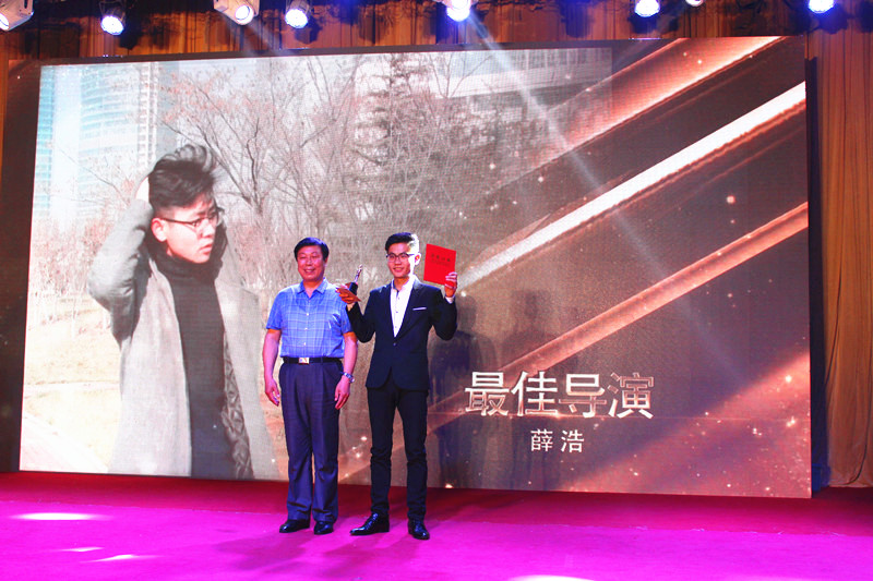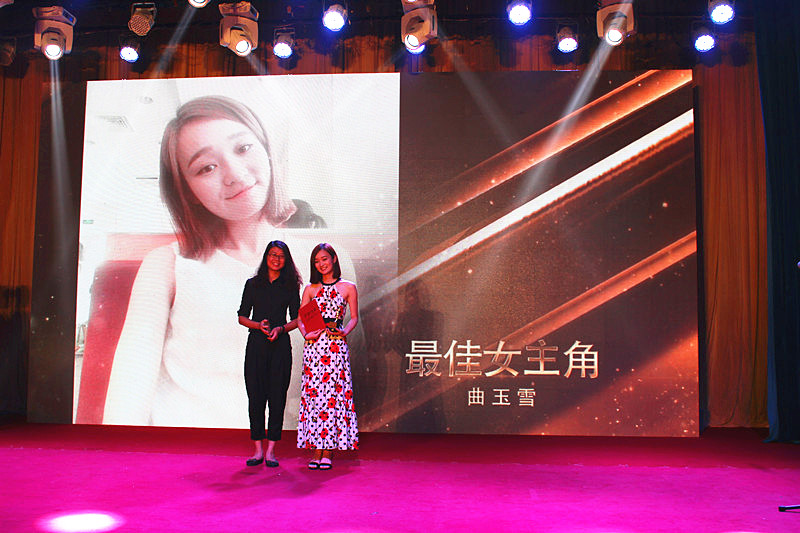 穿过长长的红地毯,伴随着精彩的视频,劲爆的热舞,颁奖典礼正式开幕。经过前期的报名和投选,共有13个电影作品进入今天的总决赛。每一个青春都是《动霸TUA》,都会《loser》,总想《重来》;在《行走的青春》里,我们要进行《爱的接力》,让世界感受到《文明就在你身边》;人生如《cups》,《恍然一梦》醒来,发现《爱在异次方》,说好的《不说再见》,《在路上》,《脚步,大学青春不迷茫》,请记住:《我叫刘凡》。本届电影节参赛作品体裁新颖多样,内容清新,主题多与青春并行,正能量满满,深得大家喜爱。晚会颁布了优秀影片奖、公益影片奖、创意创新奖、最具人气奖和创意配音奖五个团体奖。经济系王文晴用美幻诗意的文经美图摘得了最佳明信片奖。个人奖项中,张宏铭、林岚分获最佳男、女配角奖,最佳男、女主角奖则由刘岩、曲玉雪获得,范成龙获最佳编剧奖。电影《我叫刘凡》凭借生动有趣的故事情结、积极向上的主题、精湛的后期制作获得最佳影片奖,成为本届电影节最大的赢家。