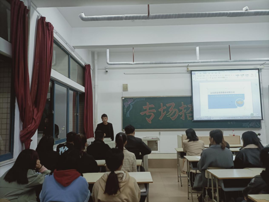 大会伊始,通过播放宣传片、PPT演示、面对面交流等方式向同学们介绍公司的概况、职业发展方向、取得成就以及人员需求等。招金集团徐佰超讲师介绍了企业文化,并详细介绍了集团相关背景和概况,并阐明了相关的招聘要求以及招聘人数,针对相关的岗位做了进一步的说明和介绍,让同学们深入了解今后就业的发展方向。经济系11届毕业生刘中山向同学们分享了毕业九年从事经济行业的工作经验,结合自身规划让学生对未来的就业前景有了总体的规划。
