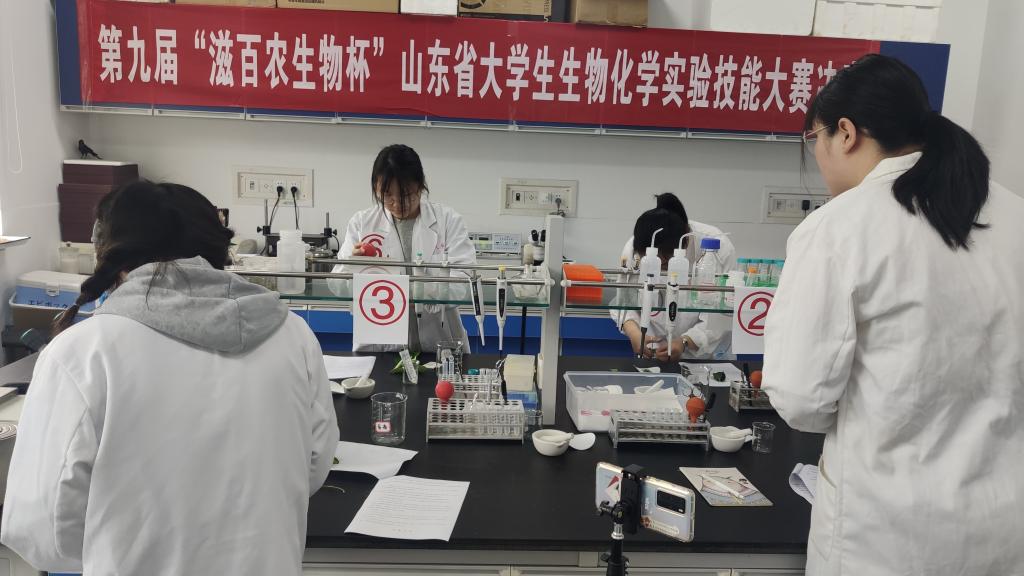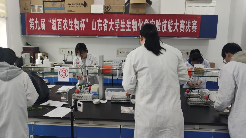 为了激发大学生对生物化学实验的热情和兴趣,拓展生物化学实验的思路,培养严谨的学习态度、科学的研究方法和创新的实验能力。在第九届“滋百农生物杯”山东省大学生生物化学实验技能大赛举办之际,我院广泛发动、积极组织学生参加比赛。