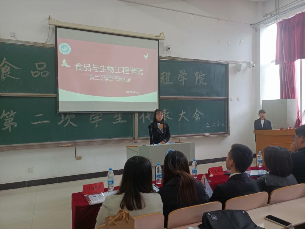 为了进一步落实团中央印发的《高校学生会组织章程制定办法》和《高校学生代表大会工作规则》,食品与生物工程学院于10月20日中午在二教109召开第二次学生代表大会,团总支书记王晶,全体学生干部及班级代表共同参加大会。