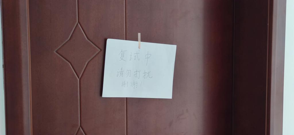 此外,为保障同一时间参加复试的学生能足够复试空间,学院动用了一切可用资源,收拾了3间办公室,提供给学生作为复试场地。老师们还对复试场地进行有线网络以及无线网络测试,以保障复试过程中对网络的需求,我院驻校老师坚持每天对复试场地进行卫生打扫以及消杀