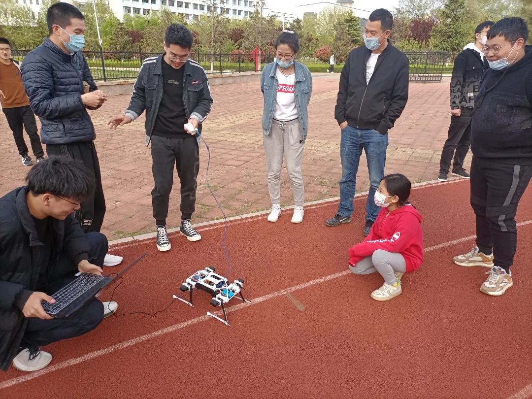 为了提高同学们专业综合素质,丰富业余生活,机电工程学院科技创新协会在体育场举办科技实践活动,以演示机器狗的行走,主要介绍科技创新协会的最新科技成果,以及科技与我们日常生活的联系,让大家感受到科技的强大的力量和动人的魅力。机电工程学院团总支书记包微和辅导员丛维参加了此次活动。