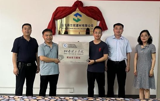 近日,信息工程学院在参加泰安地区招生咨询期间,学校资产处处长张昌州带队,后勤处副处长马衍忠、学院团总支书记祝箐赴山东得尔欣建材有限公司开展访企拓岗调研活动,并举行实习就业基地挂牌仪式。