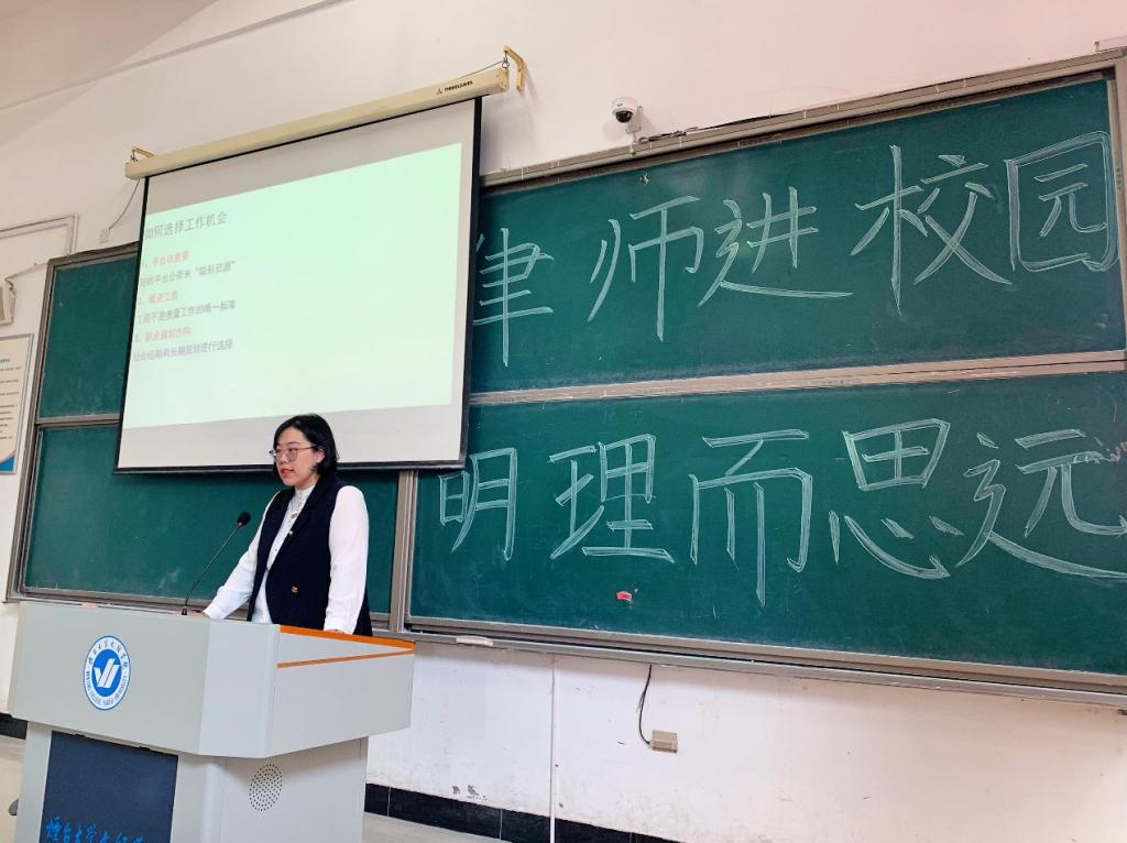 “律师进校园,明理而思远”。郑晓童律师首先围绕着员工入职与劳动关系的建立展开讲解,通过向同学们展示录用约定条件不明、试用期误区、试用期解除法定程序三方面的真实案例,结合相关法律法规,强调了在入职时员工应注意的各类问题。其次,郑律师带领同学们学习不能胜任工作员工的认定与管理,介绍员工不能胜任时公司可采取的方式等。郑律师围绕时事热点,用真实案例为同学们解答了“休息时间回复微信是否属于加班”这一争议,并引入加班工资标准和工资计算基数等内容的讲解,使同学们站在更直观的角度了解自己步入职场后应尽的义务及个人权利。他建议同学们应做好自身职业生涯规划并提出职业建议,为即将踏入职场的同学们提供了宝贵的参考意见。此外,郑律师逐一对同学们提出的各类问题进行了专业、细致解答。