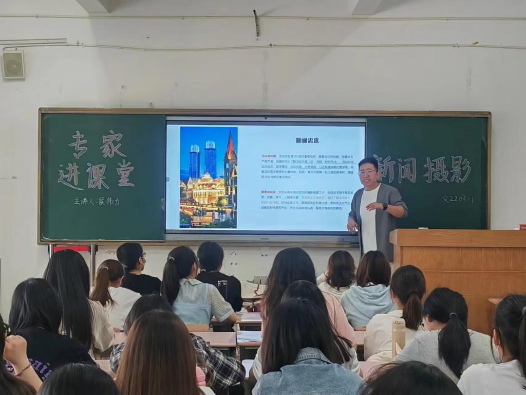 为进一步提高文法学院新闻学子的摄影技术,加强学生对新闻摄影实践应用和前沿知识的理解,提升学生新闻摄影实务的方法和技巧,5月22日,文法学院于二教212举办《新闻摄影》专家进课堂活动,文法学院许静老师以及新闻学大一学生参加本次活动。