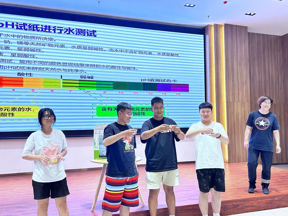 此次宣讲活动邀请农夫山泉烟台办事处企业规划吕文杰担任主讲。首先以《生命与水》的视频展开宣讲,让同学们了解水的重要性。吕老师从生活中水为主题,讲解日常生活中的节水小窍门。随后邀请同学们一起进行水测验,了解水的PH值,了解纯净水和天然水的区别。吕老师呼吁同学们要树立节水意识,保护水资源。同学们热情高涨、认真听讲,在宣讲完毕后同学们也发表了自己的见解。纷纷表示以后一定会节约水资源,并倡导身边的人一起节水。