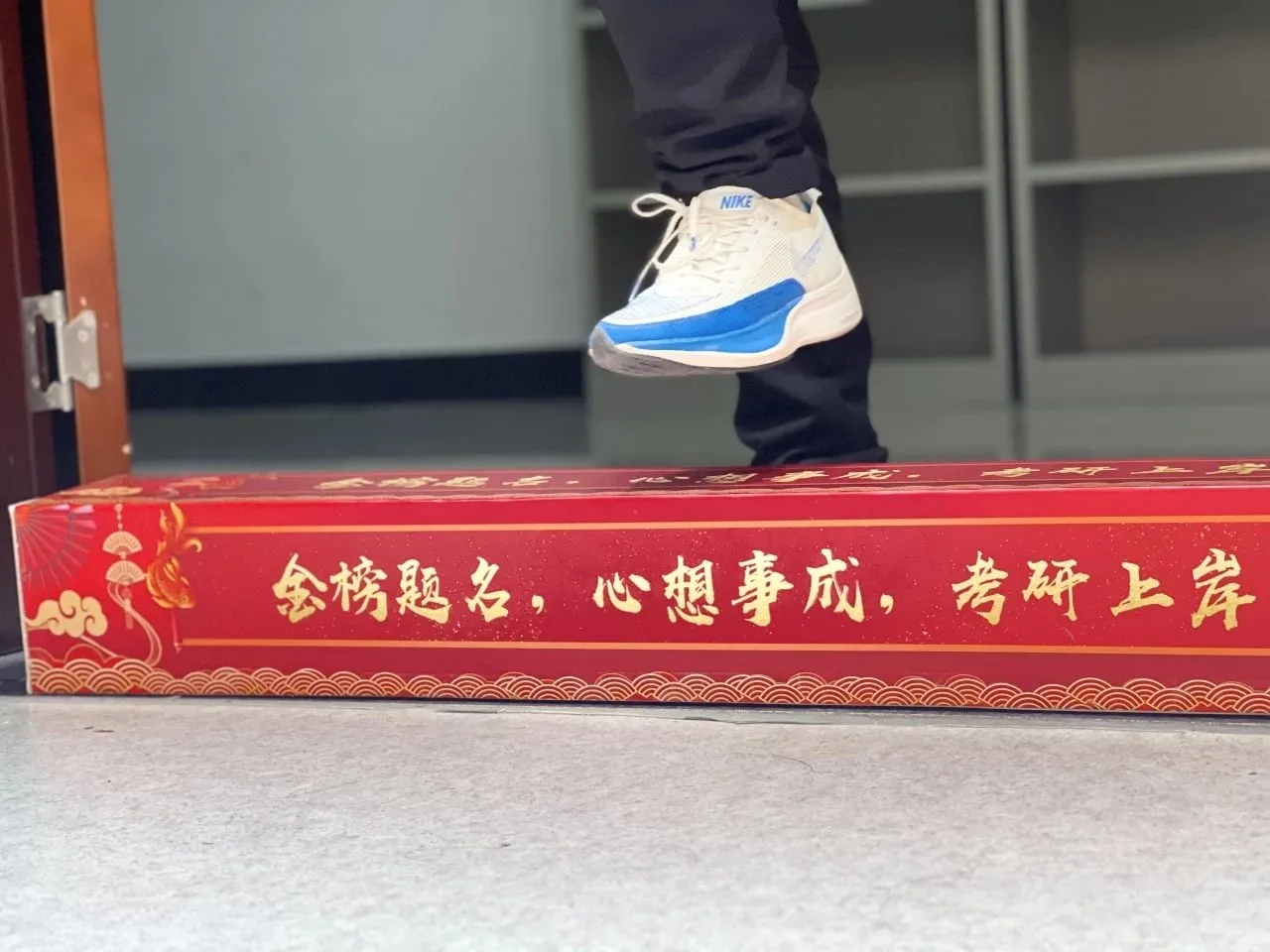 同时,学院老师们也为考研学子送上“考研加油包”,有暖宝宝、旺仔牛奶糖、中性笔、励志勋章、美工刀、纸巾等丰富内容。一个个精美的勋章,上面印着一句句诚挚的祝福;一袋袋考试文具,预祝考研学子下笔如有神,考研一定成;福运满满的旺仔牛奶糖,寓意着考研学子金榜题名,万事皆“旺”!一份礼包送出的是祝福,包含的是关心,深藏的是情意。同学们纷纷跨过放置门口的“上岸石”,也一步迈向灿烂的未来,相信在老师的共同祝福下考研学子必将大放异彩!