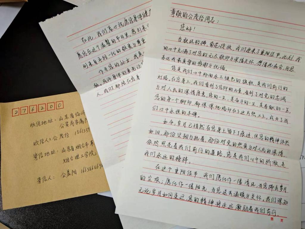 重阳节,一个尊老敬老的传统节日。建筑工程学院的学生们没有忘记家中的长辈们,他们通过书信向长辈们表达了深深的敬爱与关怀。书信中,学生们回忆了长辈们的谆谆教诲与无私关爱,表达了对长辈们身体健康、晚年幸福的祝愿。这些书信如同青鸟穿越时空的界限,将学生们的敬老之心传递到了长辈们的心间。长辈们收到书信后,无不感动落泪,感受到了年轻一代的尊重与关爱。