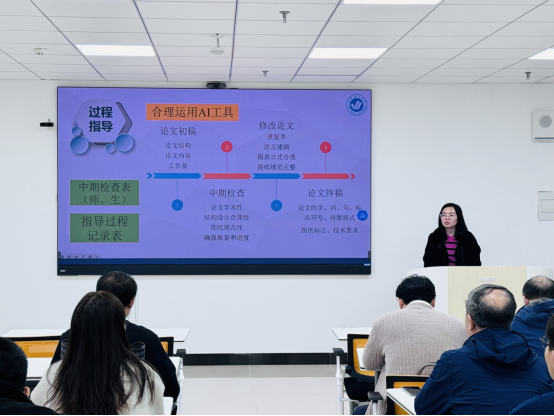 她强调,毕业设计不仅是对学生专业知识的考察,更是对其独立思考、解决实际问题能力的培养。因此,在指导过程中,教师要注重引导学生进行深入思考,帮助他们在理论与实践的结合中找到创新点,并及时发现和解决问题。此外,单瑞霞还对如何制定合理的指导计划、如何高效利用学习通、QQ群等信息化交流平台等方面做了细致的讲解。